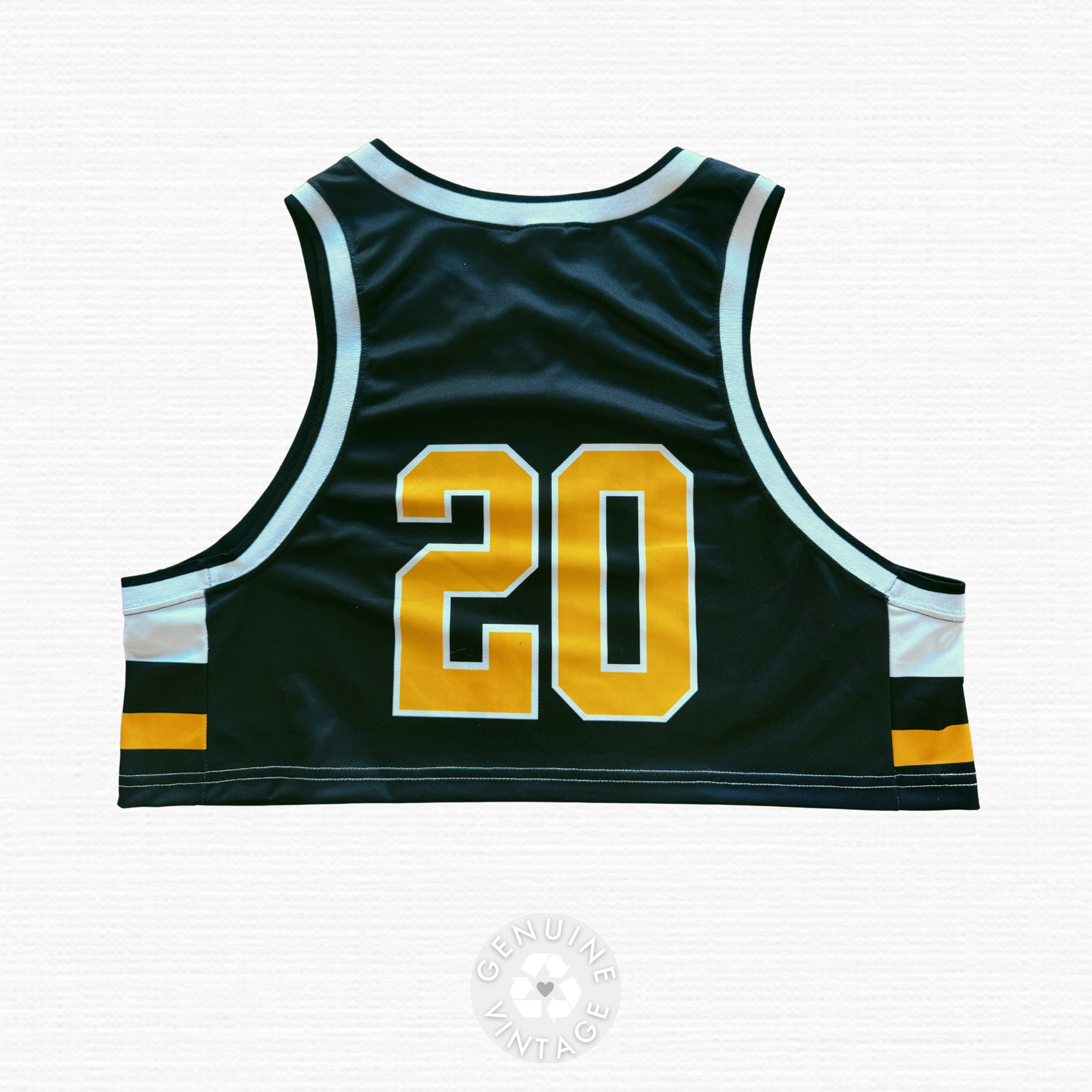 Gameday is everyday with this unique one of a kind jersey crop. Rep your team with this versatile topper that pairs perfectly year round with shorts, jeans or dress it up with a sequin skirt. We're here for it all! Sustainably upcycled in Canada with zero waste sewing.